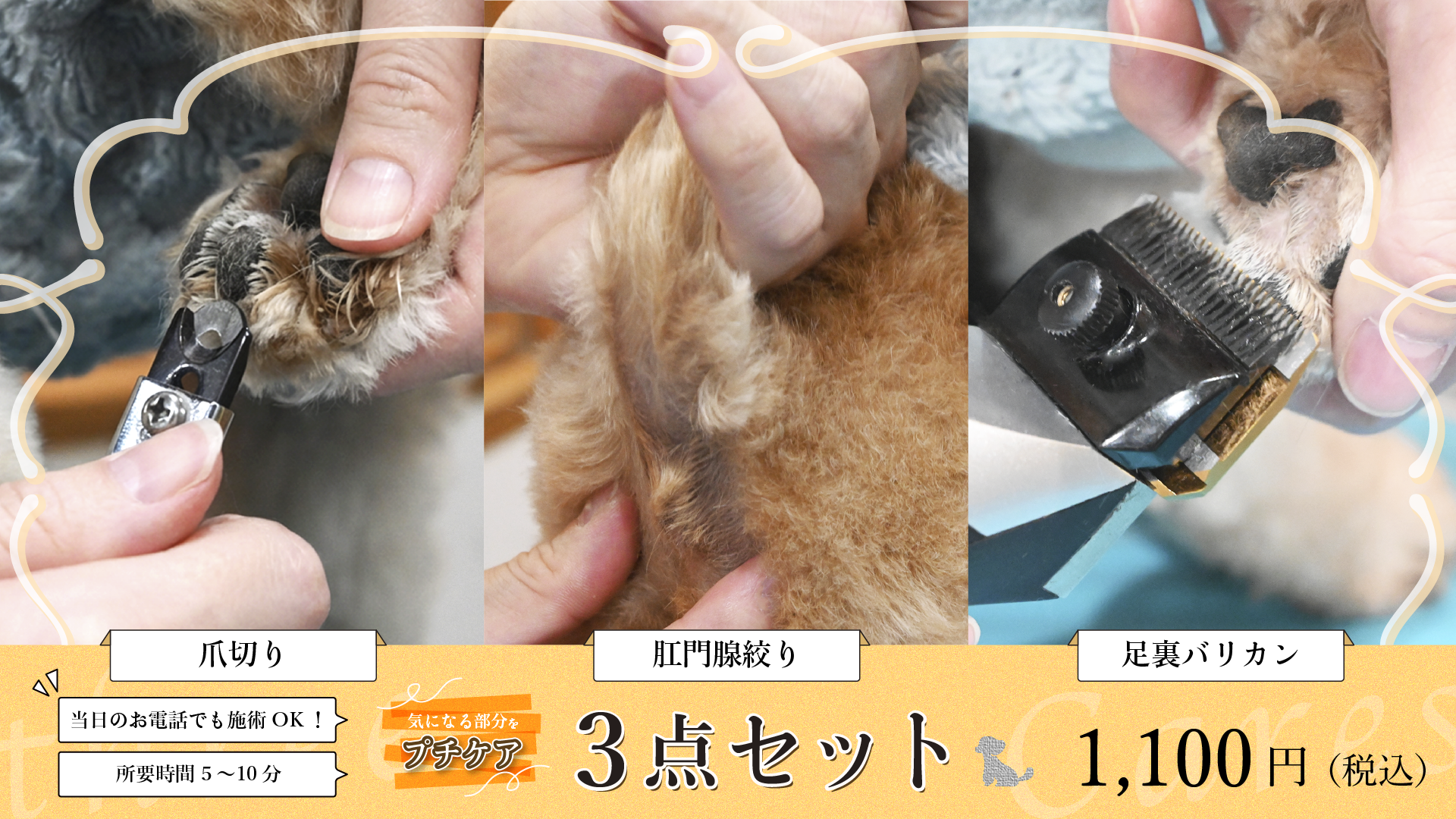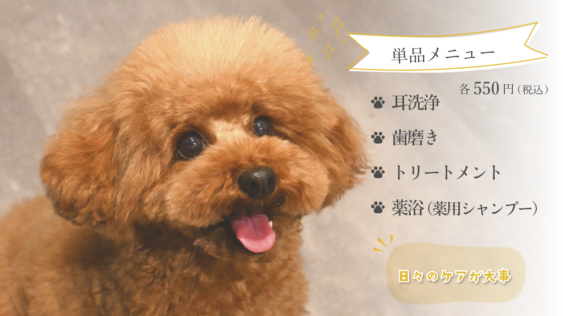 当店では、わんちゃんに痛みや強いストレスを与えないことを最も大切にしております。安全で負担の少ない施術を行うため、あらかじめご理解・ご了承くださいますようお願い申し上げます。