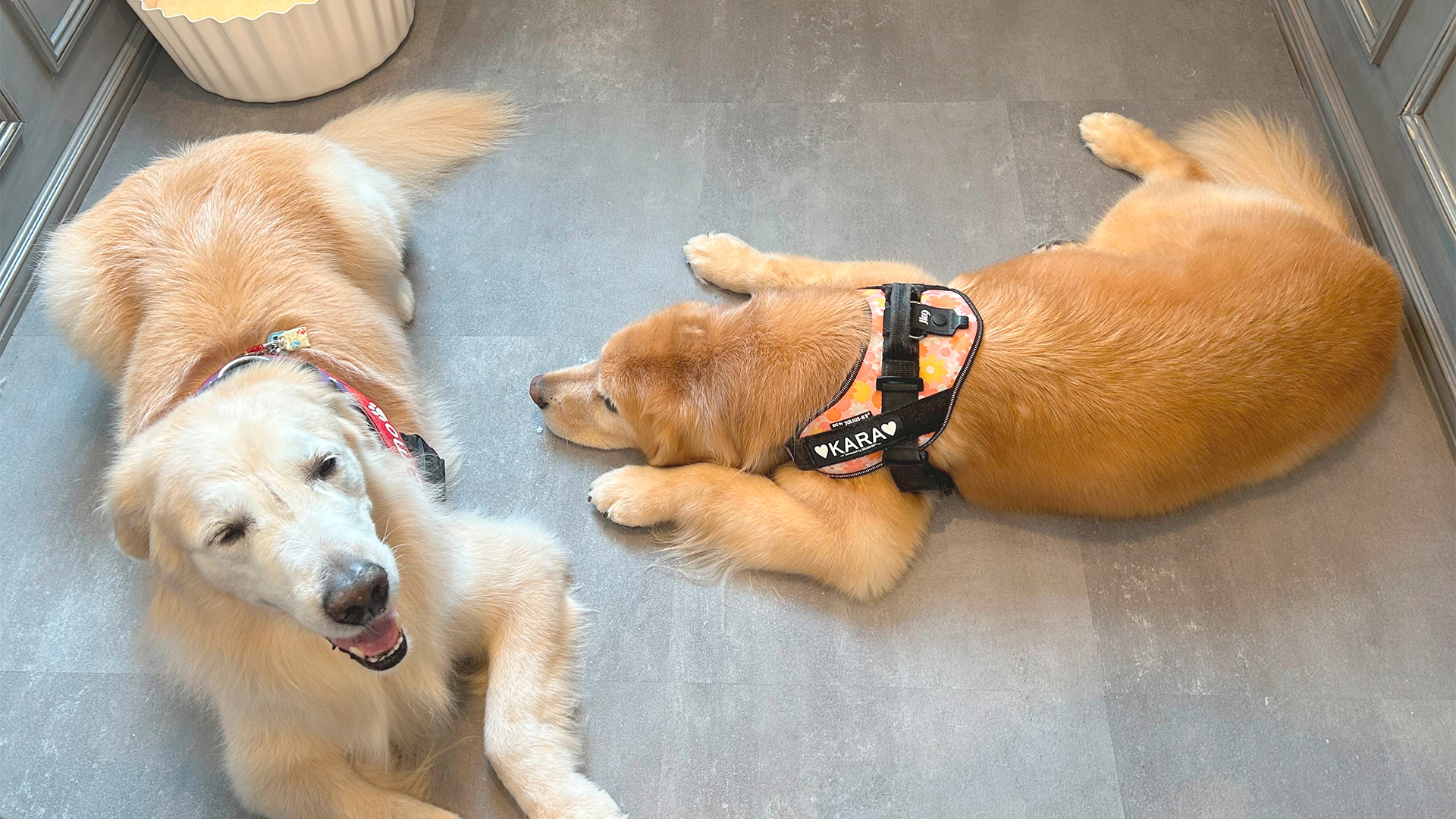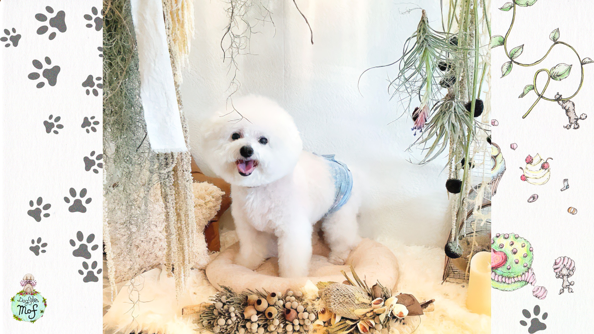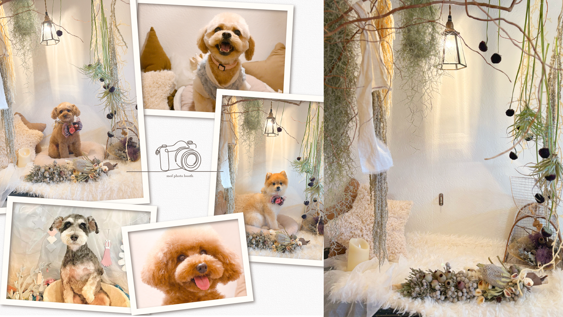 いつものうちの子も可愛いけれど、トリミング後は一段とキレイで魅力的!その姿を残すための撮影ブースをご用意しました。安全に撮影できるようリードフックを設置しています。